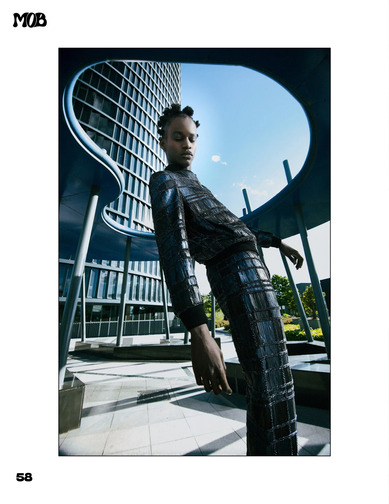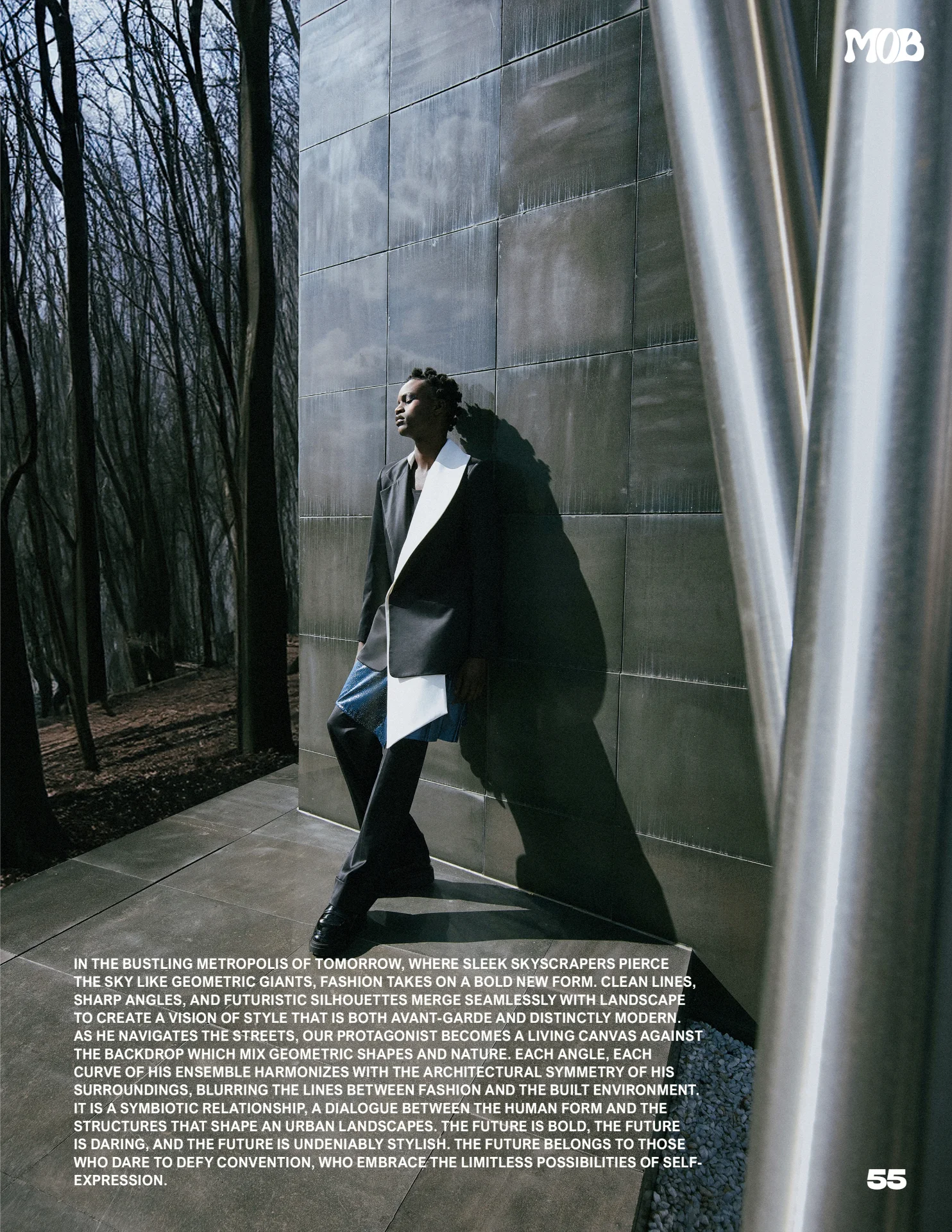 Geometric Future explores the connection between fashion, architecture, and the city. Set in an imagined metropolis of tomorrow, this editorial highlights clean lines, sharp angles, and futuristic silhouettes that echo the geometry of urban landscapes.