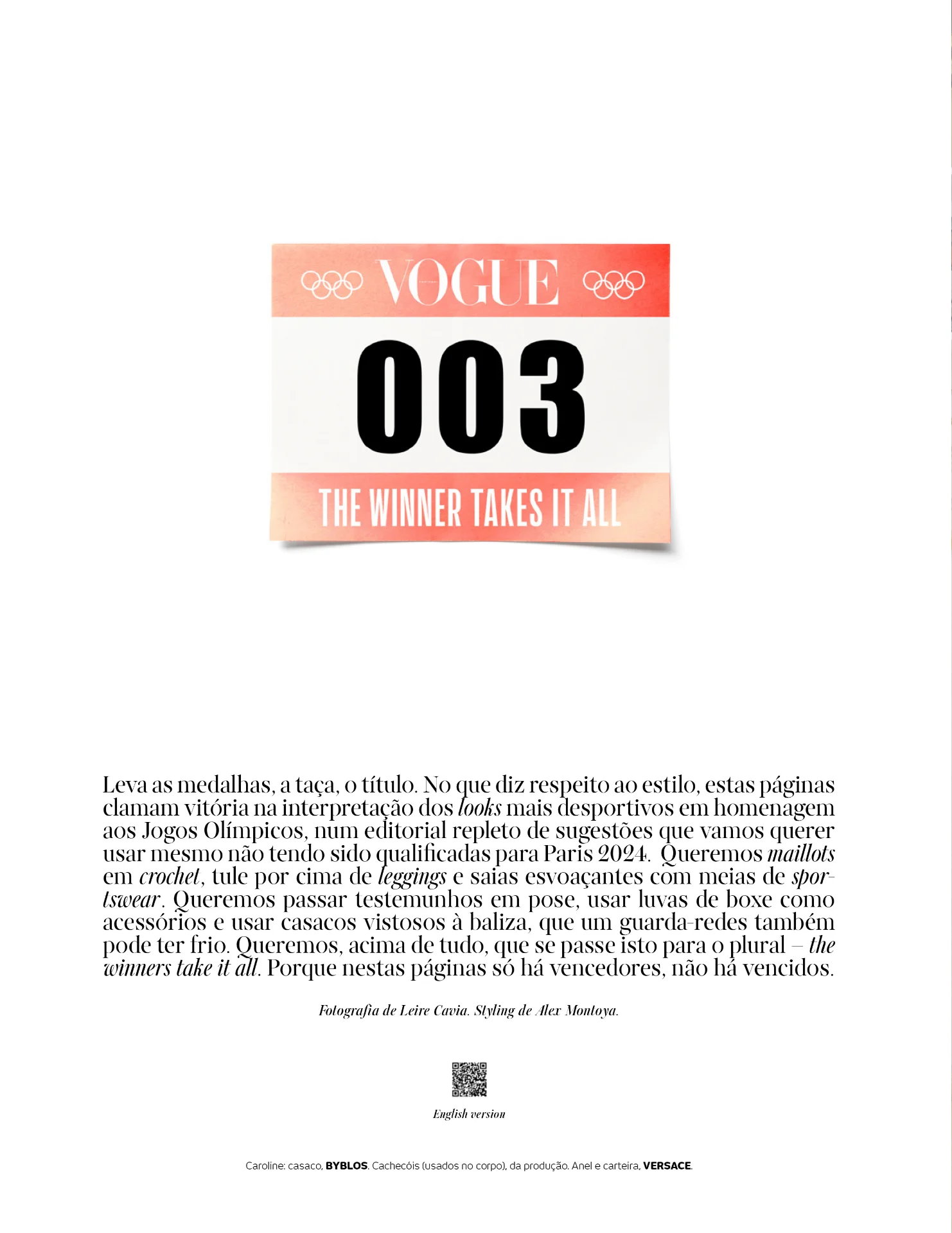 Take the medals, the trophy, the title. When it comes to style, these pages celebrate victory through a fresh interpretation of the most athletic looks, in homage to the Olympic Games. This editorial is full of suggestions we’ll want to wear, even if we’re not competing in Paris 2024.